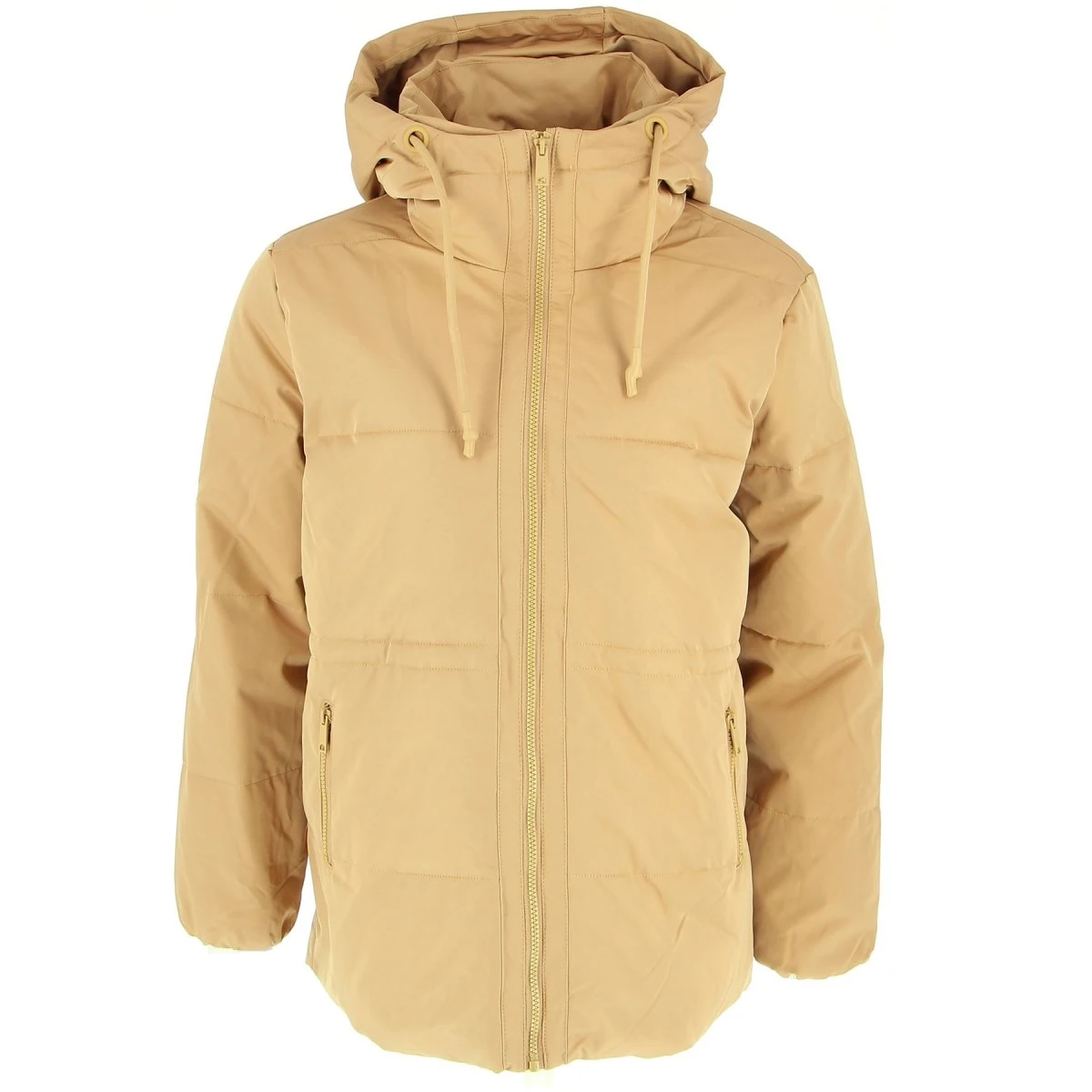 Veste courte oversize Camaieu, coloris beige, capuche avec cordon de serrage, non amovible. Col haut, zip de fermeture. Poches latérales zippées.