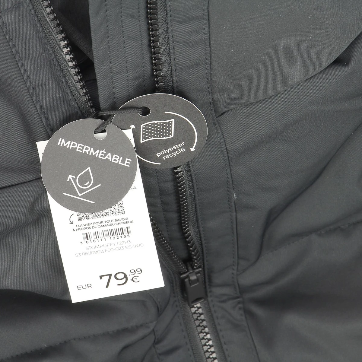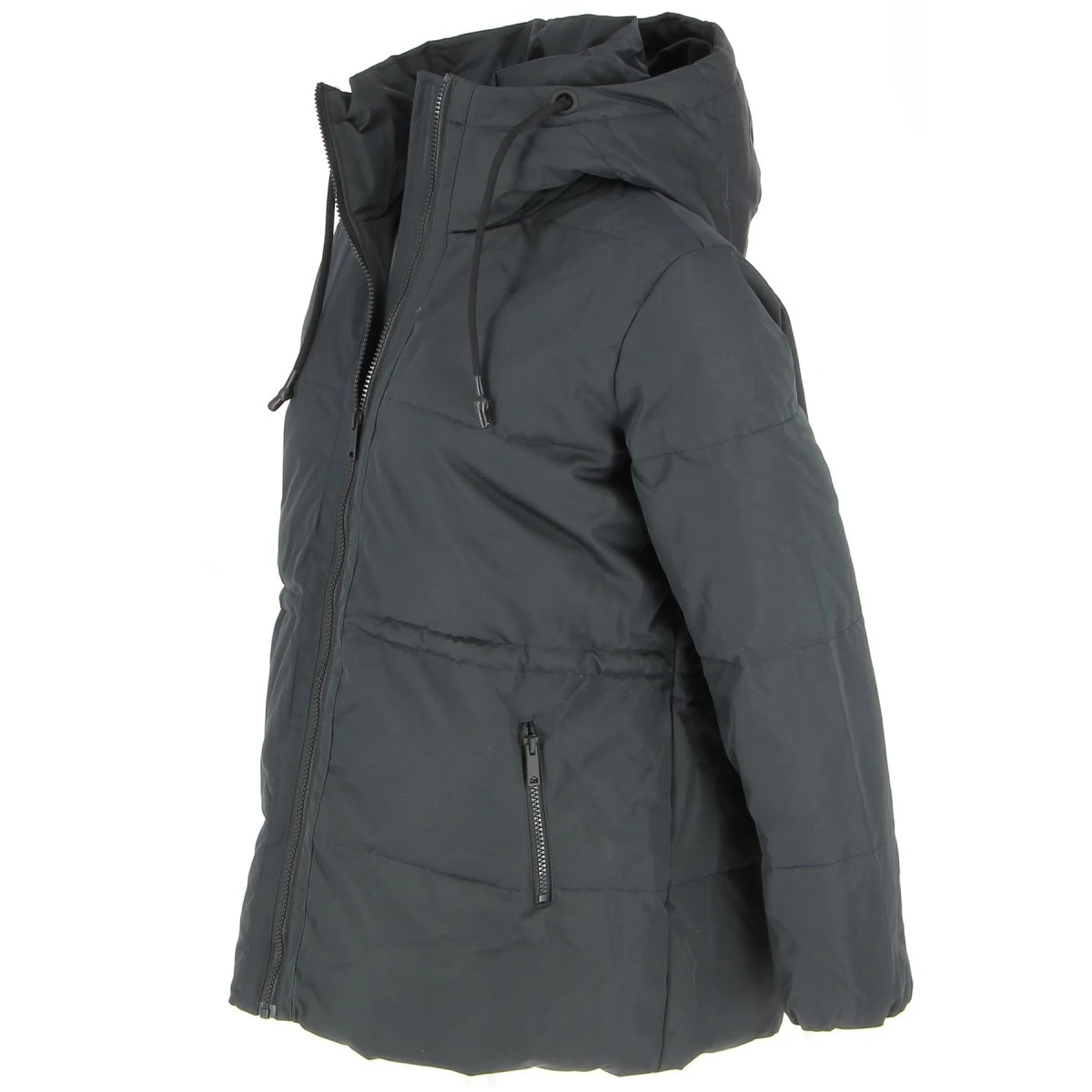 Doudoune oversize Camaieu, coloris noir, capuche avec cordon de serrage, non amovible. Col haut, zip de fermeture. Poches latérales zippées.
