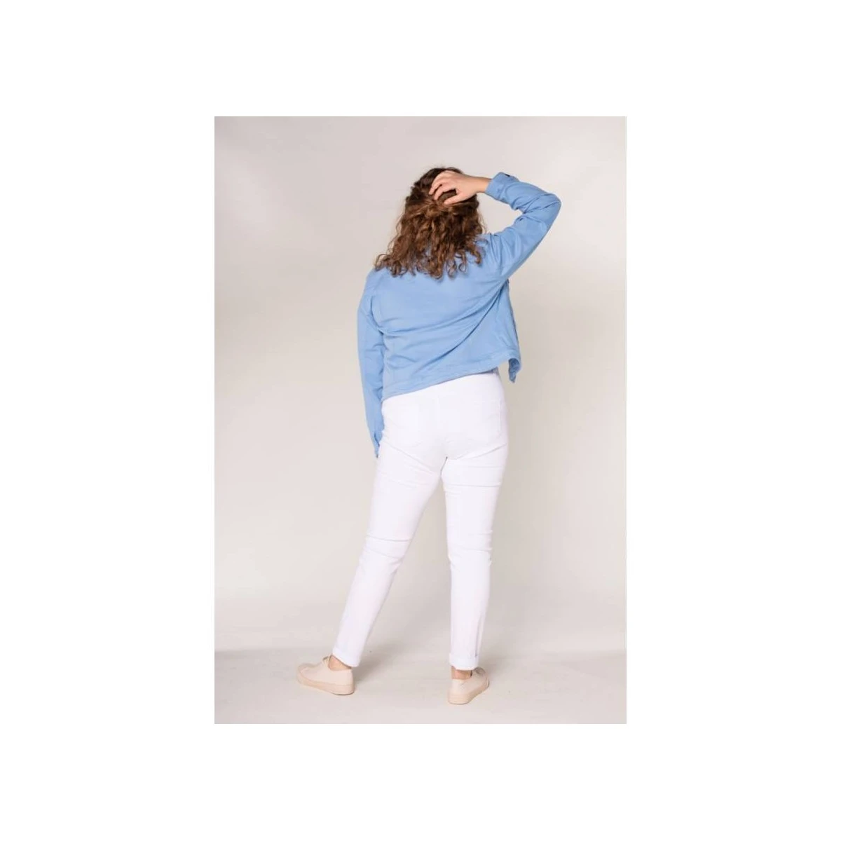 Veste en toile cintrée, coloris bleu ciel. Un basique de votre dressing, une coupe cintrée et assez courte pour un look dans le coup.