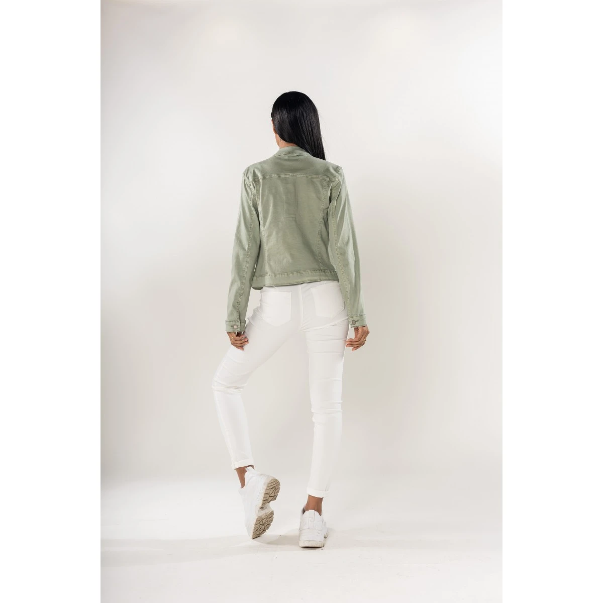 Col chemise et boutons en métal. 2 poches poitrine avec rabat boutonné et 2 poches latérales. En total look jean ou porté sur une robe longue ou courte, il fera son effet en toutes saisons. Sa matière stretch assure un confort parfait.